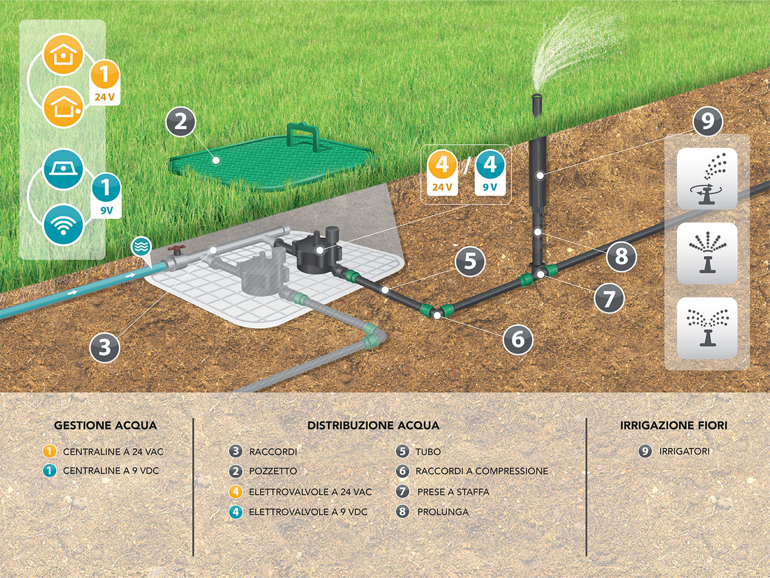 Upravljajte cijelim sustavom putem programatora ili pametnog telefona. Uz senzore za kišu, sustav će automatski prestati s radom ako padne kiša.